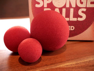 Hier gibt es zwei Schwammbälle roter Farbe für "Schwamm drüber", in drei unterschiedlichen Größen: